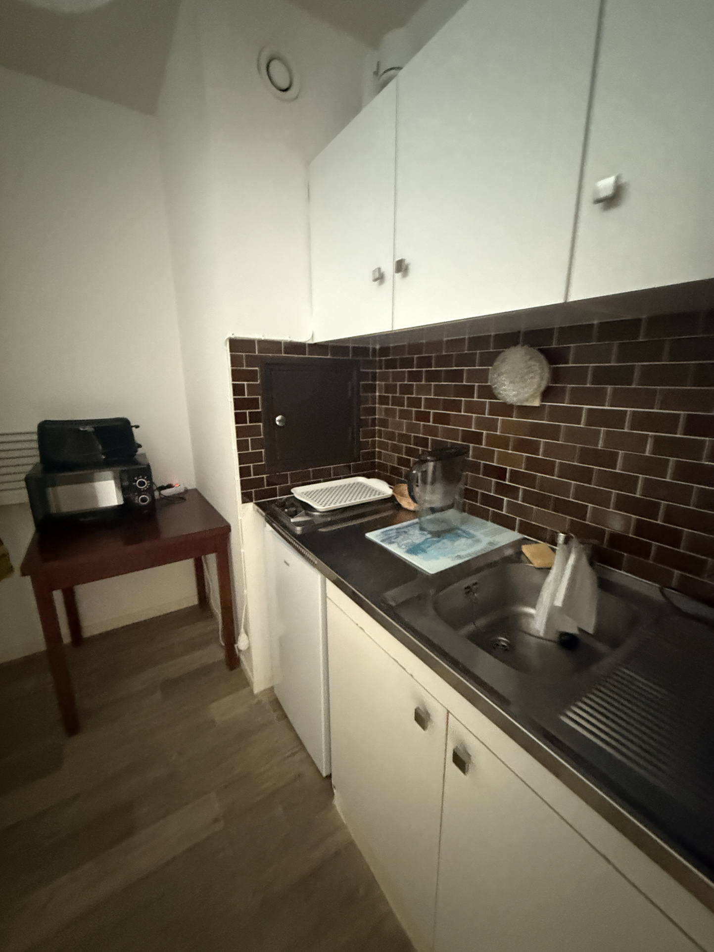 Une entrée, une cuisine aménagée et équipée, une pièce de vie et une salle d'eau avec WC.